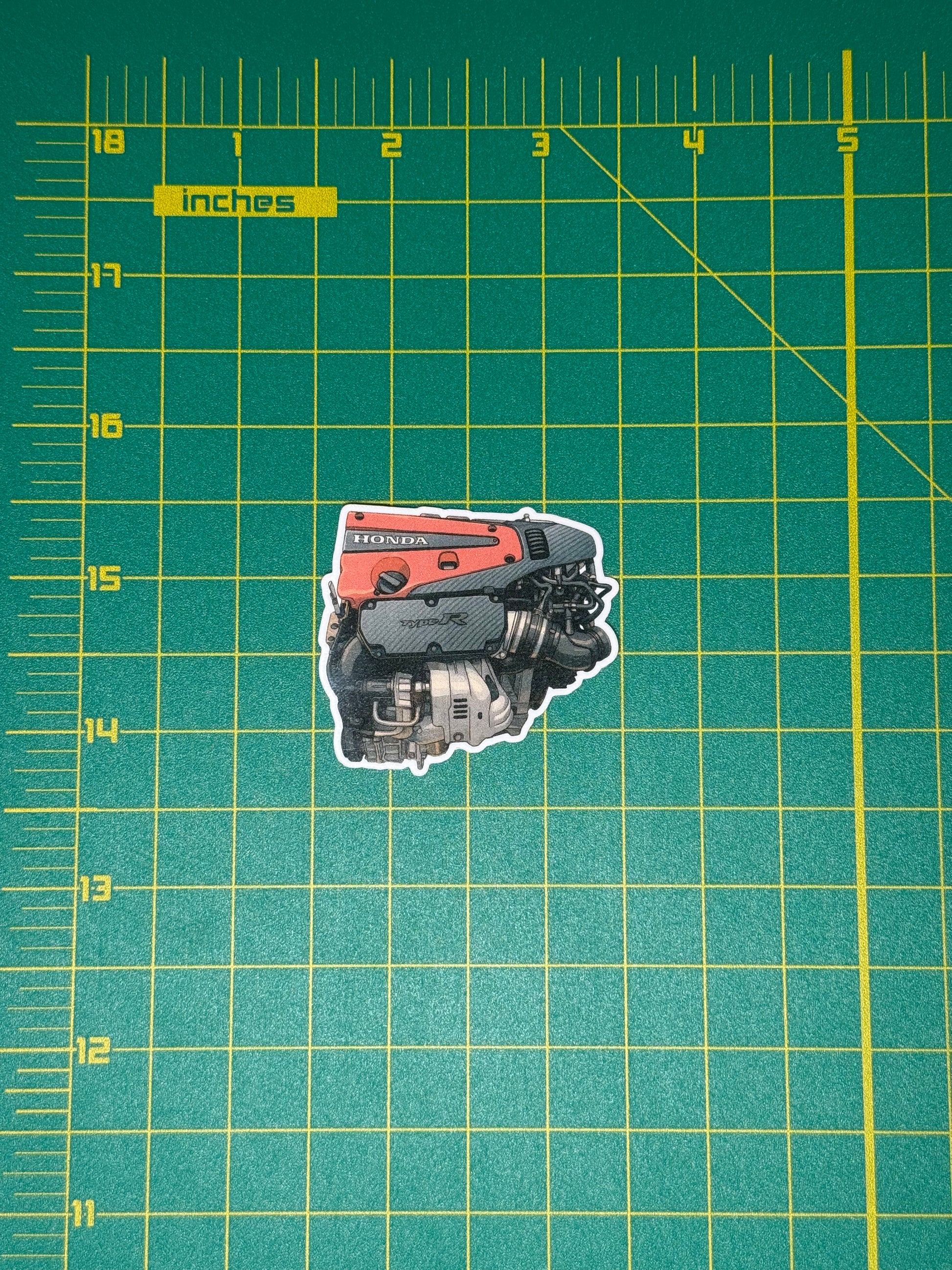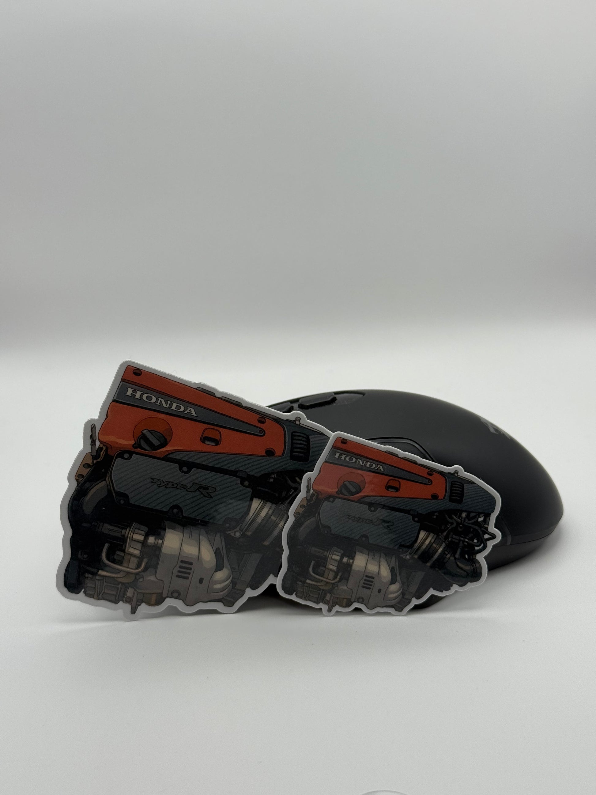 Rep the engine that conquered the Nürburgring. This high-detail sticker features the Honda K20C1 2.0L VTEC Turbo engine found in the FK8 and FL5 Civic Type R. The illustration captures the iconic "Red Top" valve cover, the carbon-fiber textured "Type R" intake plate, and the turbocharger plumbing that pushes 300+ HP from the factory.