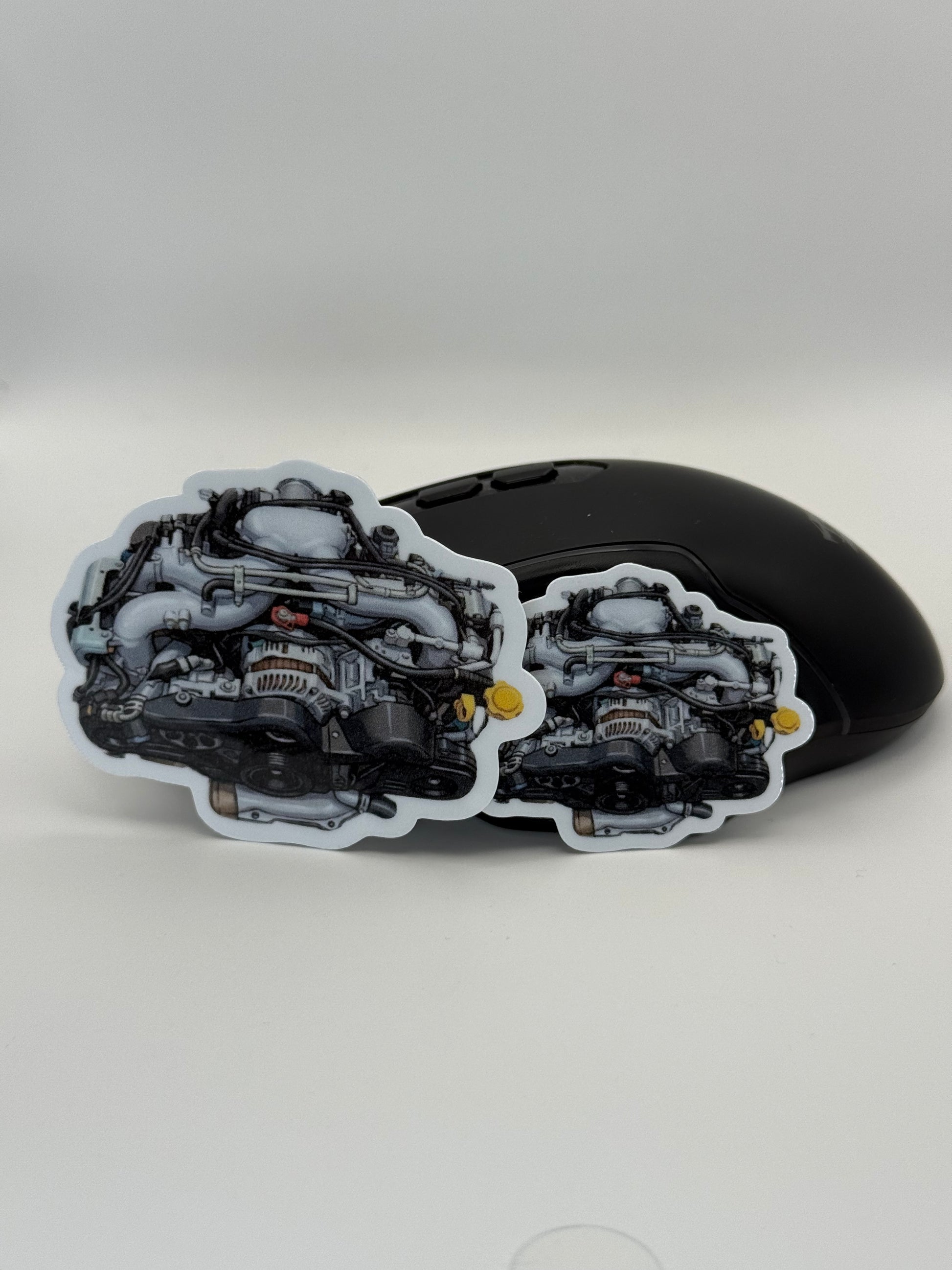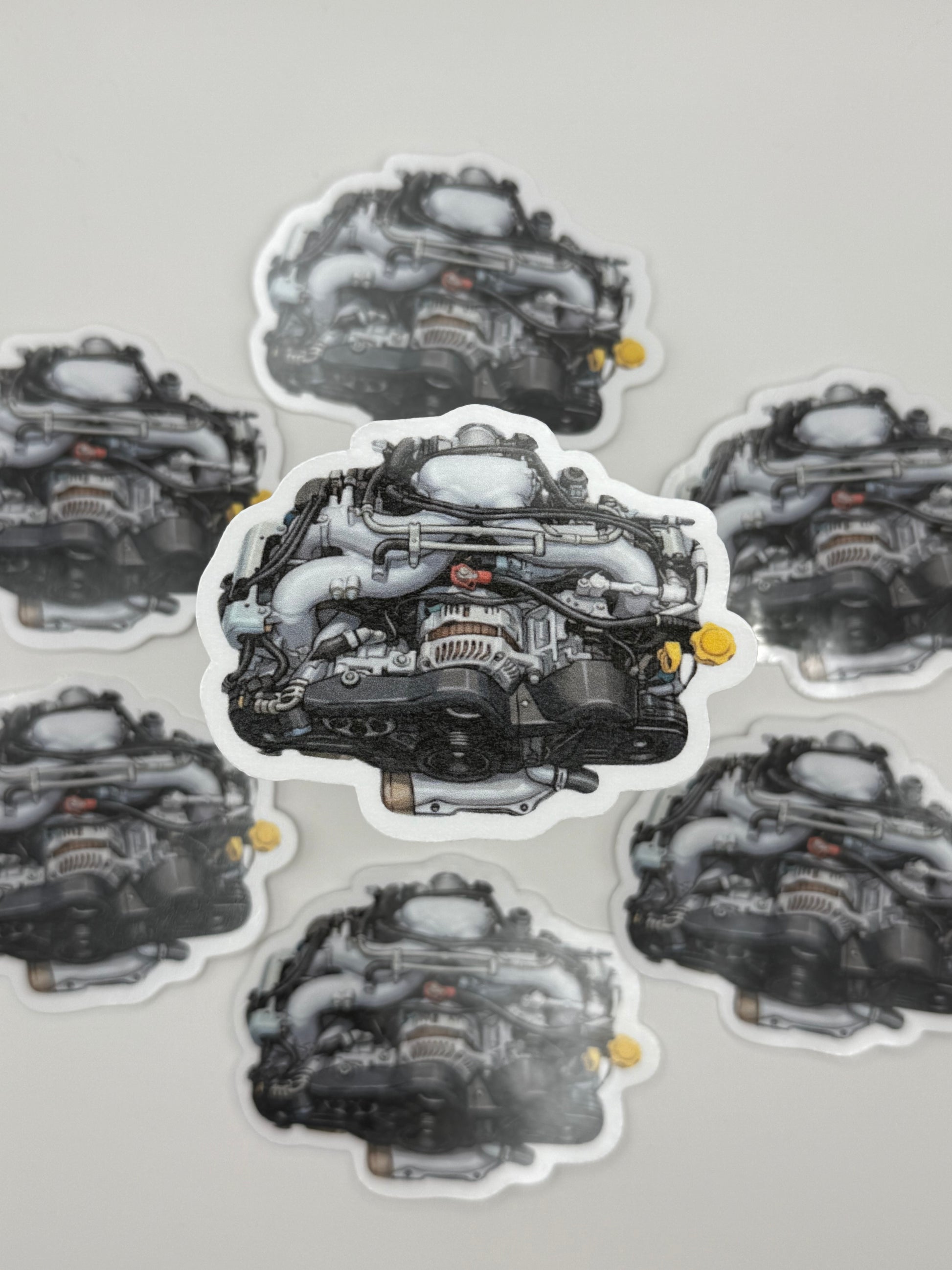 Rep the engine that powers the world's best daily drivers. This high-detail sticker features the Naturally Aspirated Subaru EJ25 SOHC Boxer engine. Found in the Forester, Outback, and Legacy, this is the reliable workhorse that has taken more people camping, skiing, and off-roading than any other engine. The illustration captures the distinct "spider" intake manifold and the alternator placement that every Subie owner knows.