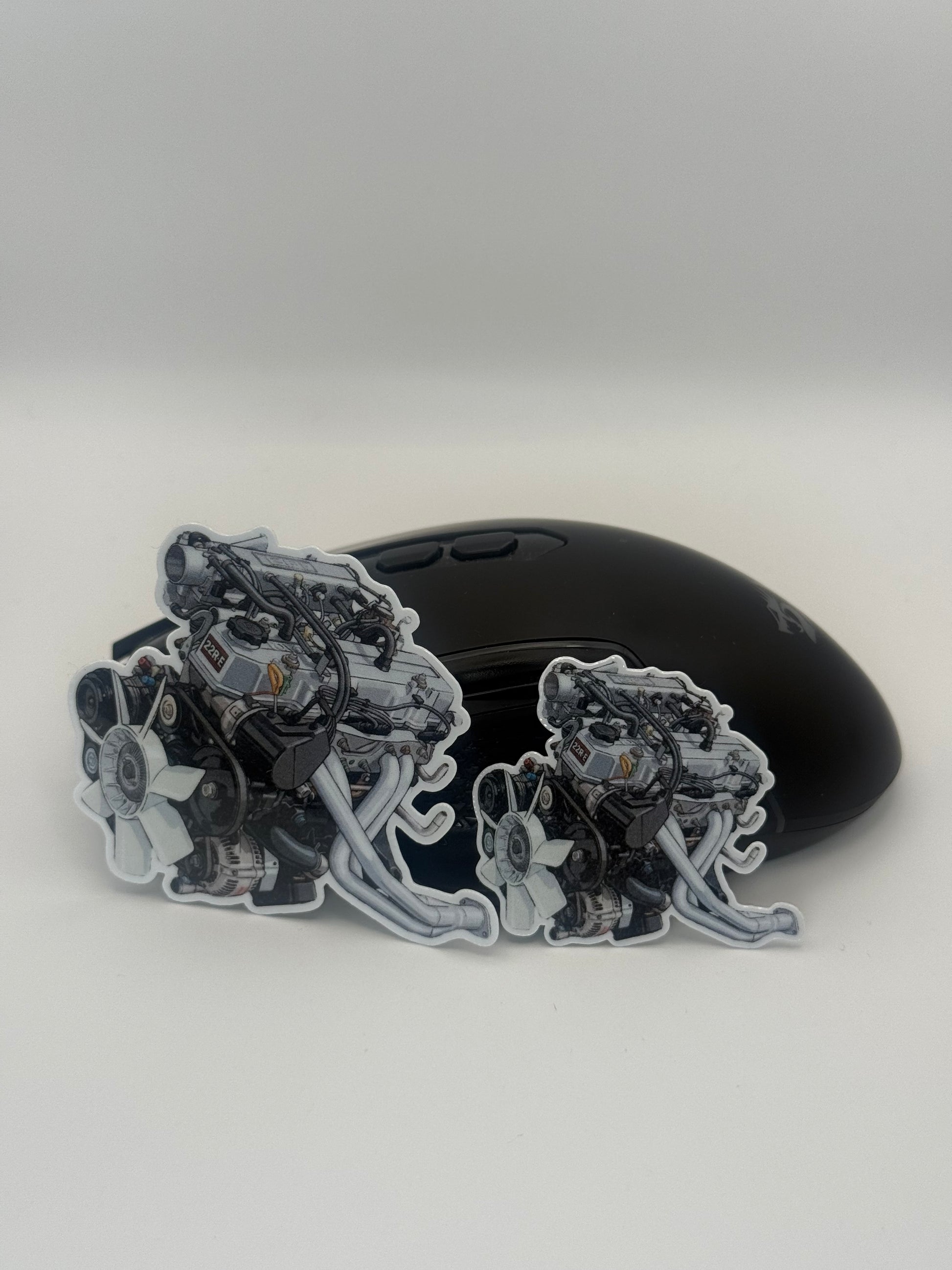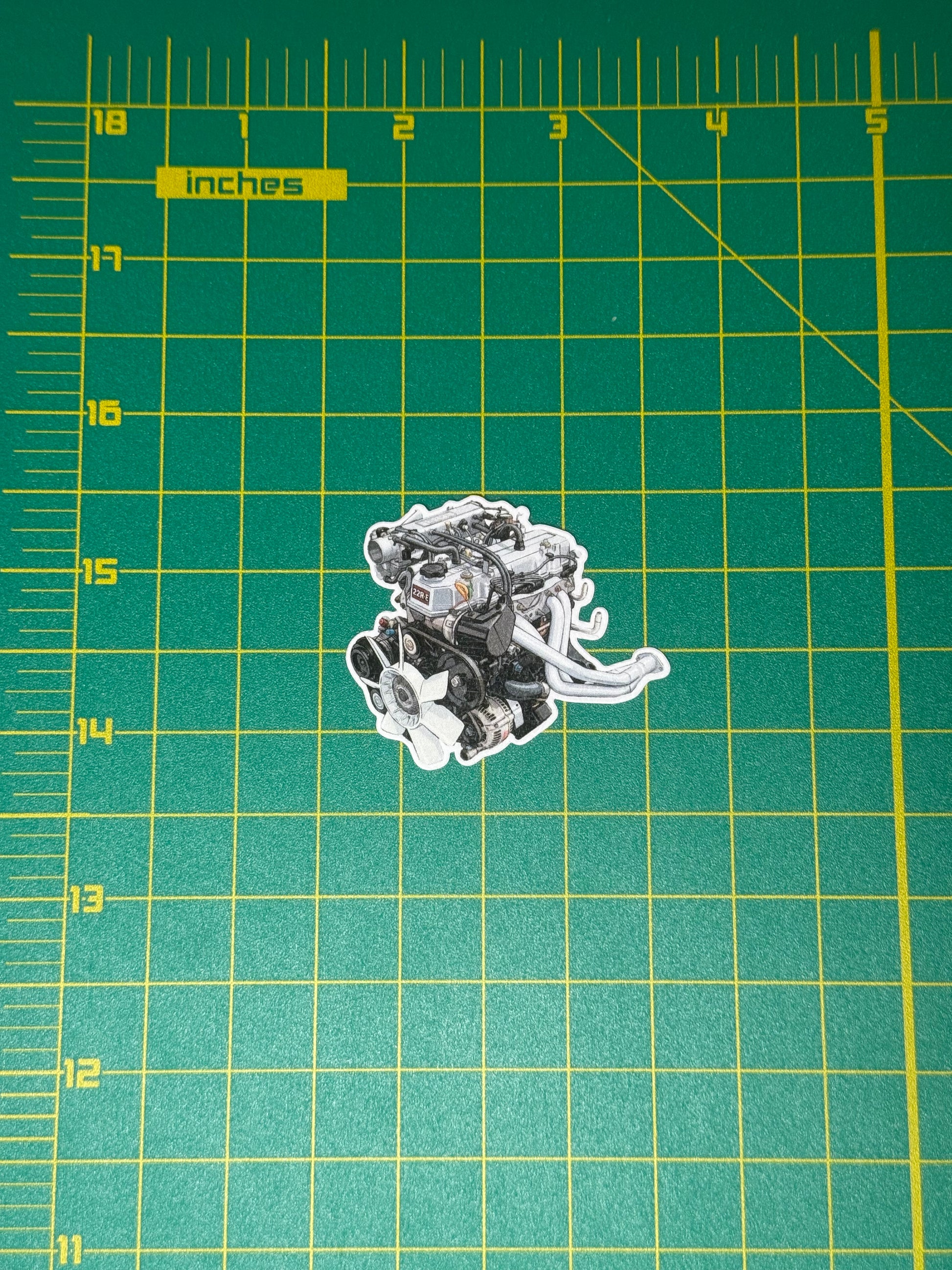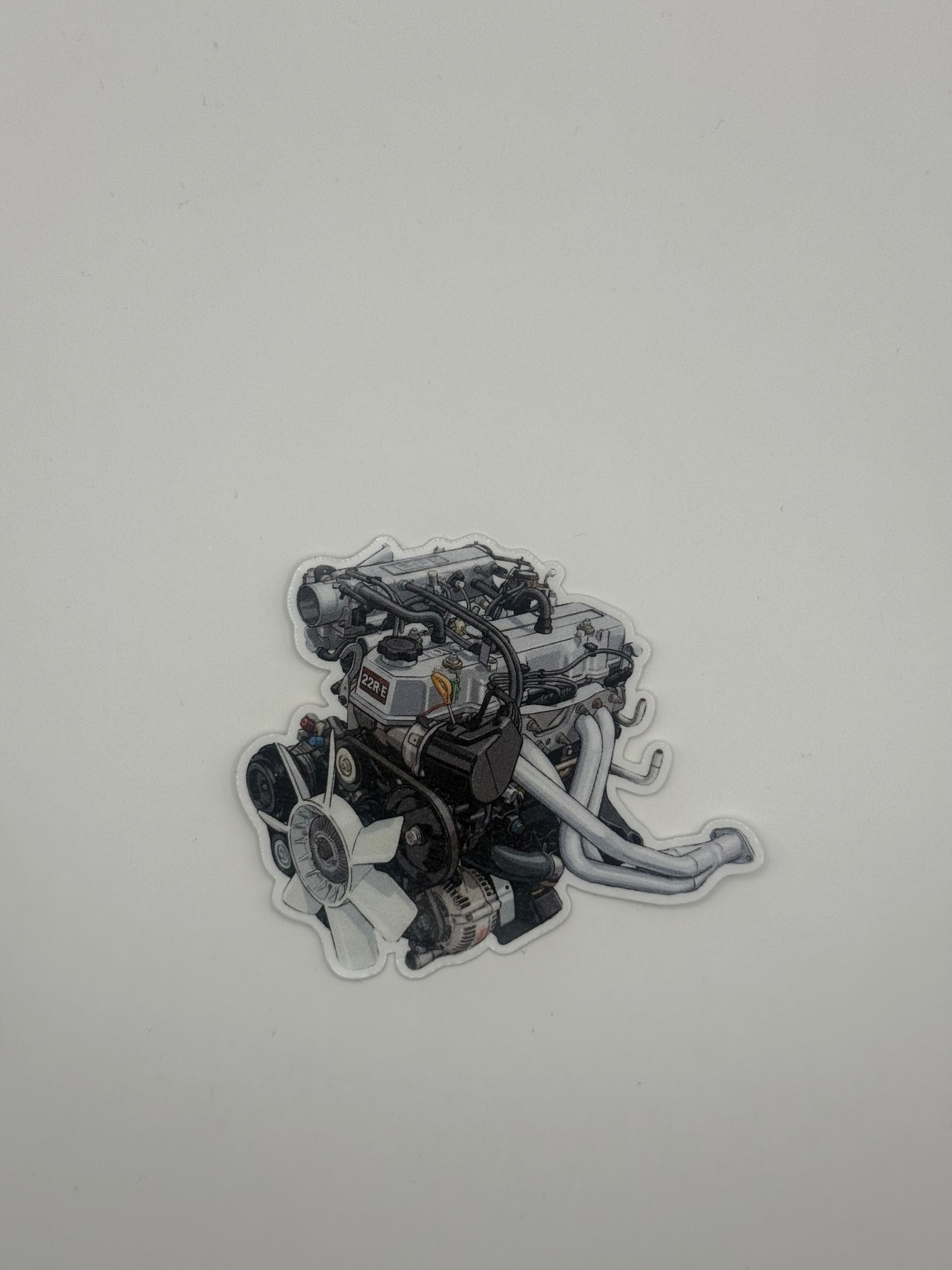 Rep the most reliable engine ever made. This detailed sticker features the legendary Toyota 22R-E 2.4L 4-Cylinder found in the classic 80s and 90s Pickups and 4Runners. The illustration captures the fuel-injected plenum, the mechanical clutch fan, and a set of aftermarket exhaust headers for that extra bit of torque.